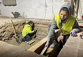 Faszinierende Einblicke in das historische Welterbe Lübeck liefern zurzeit archäologische Untersuchungen unter dem Fußboden von St. Marien in Lübeck. Im Fokus stehen dabei die historischen Grüfte und deren Bedeutung als Bestattungsorte der Hanse-Eliten. Ganz neu: Über beleuchtete Infotafeln erfahren Besucherinnen und Besucher mehr über die Arbeiten der Archäologen.