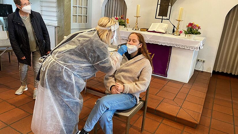 "Wir haben einfach einen entsprechend großen Raum, in dem bis zu 16 Personen parallel getestet werden können", erklärt der Pastor. Zudem verfüge die Gemeinde über Erfahrungen mit corona-konformen Hilfsangeboten. Schon im ersten Lockdown im Frühjahr 2020 habe sie, als die Tafel schließen musste, kurzerhand die Essensausgabe auf den Kirchplatz nach draußen verlegt. Die Wartenden wurden damals wie heute durch ein Einbahn-Straßensystem geschleust, so dass der Sicherheitsabstand gewährleistet ist.