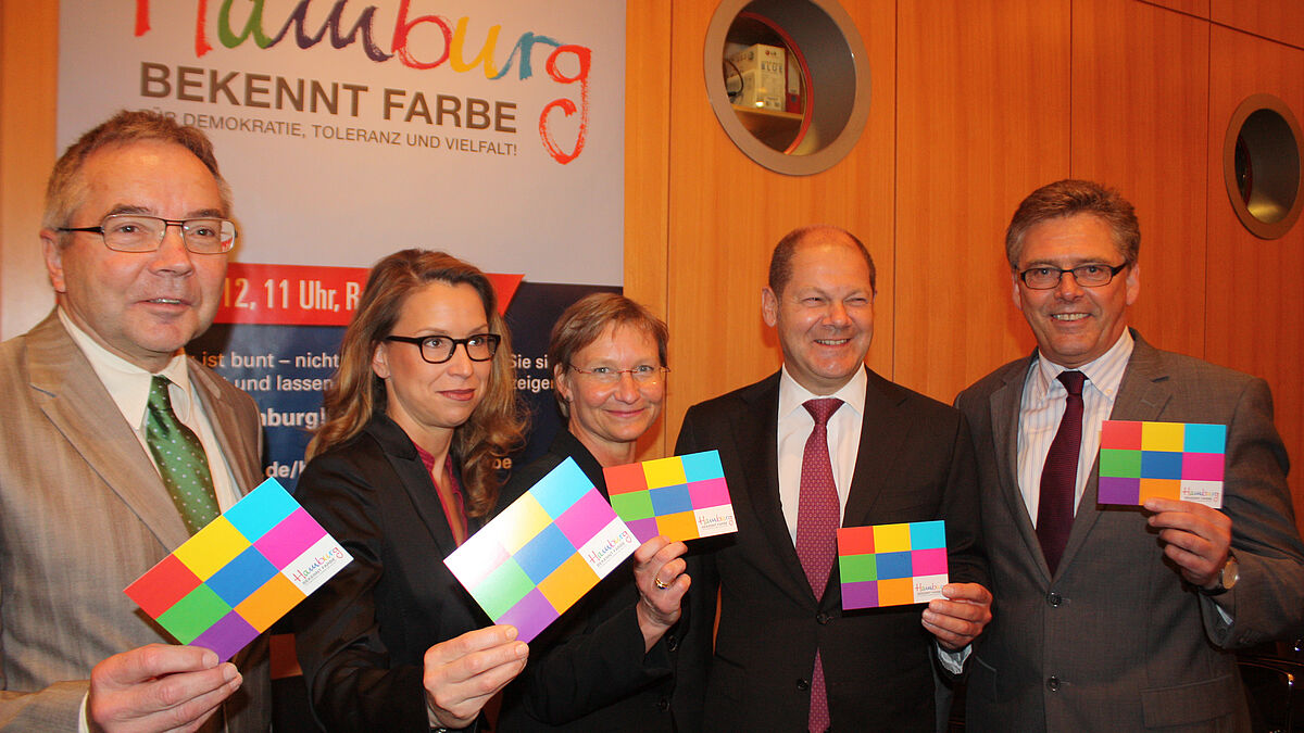 Nach den Worten von Scholz haben rund ein Drittel aller Hamburger Wurzeln in einem anderen Land. Diese „Vielfalt der Städte” seien „ein Schlüssel und ein Schatz”, der gegen Intoleranz, Ressentiment und Rassismus verteidigt werden müsse. „Hamburg ist eine offene, tolerante und am Neuen interessierte Stadt”, sagte Scholz. Auch dieses Signal solle vom 2. Juni ausgehen. Bischöfin Fehrs betonte, dass die Initiative gegen den Rechtsradikalismus „überparteilich und bunt” sei. „Gemeinsam stehen wir für ein buntes, kulturell vielfältiges und religiös tolerantes Hamburg”, sagte sie.