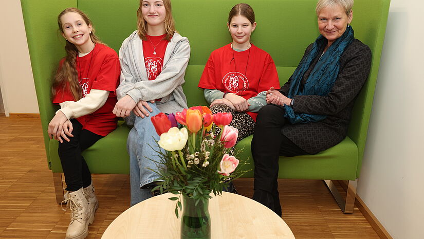 Mittwochmittag trafen gleich vier Bischöfinnen in der Bischofskanzlei Hamburg aufeinander: Die Hamburger Kinderbischöfinnen Anastasia Koloda, Paula Lüdtke und Amilia Schmidt trafen ihre "Amtsschwester" Kirsten Fehrs, Bischöfin im Sprengel Hamburg und Lübeck, zum Kennenlernen und zum Gedankenaustausch.