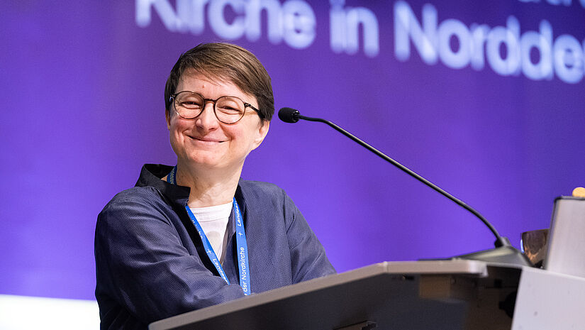 Im Gebet fährt die Referentin der Arbeitsstelle „Kirche im Dialog“ der Nordkirche fort: "Manchmal sind unsere Synoden-Themen und Entscheidungen noch komplizierter und wir wissen nicht, ob wir es schaffen können. Wir hoffen darauf, dass wir deine Gegenwart spüren und uns einander daran erinnern, was du zugesagt hast. Damit Zuversicht unsere Seelen flutet. Damit wir vertrauen, dass es gemeinsam und mit deiner Hilfe gut ausgehen kann. Amen. "
