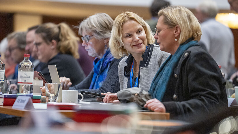 In ihrer Einbringung warb die Bischöfin dafür, der von betroffenen Menschen mitentwickelten Richtlinie Rückenwind zu geben: "Wir sind uns bewusst, dass diese Richtlinie eine besondere ist. Schlicht, weil sich hier juristische Formulierungen mit aus Erfahrung genährten Verfahrenswegen und Haltungen verbinden. Gerade deshalb aber wäre es wichtig, dass sie Ihre Zustimmung findet – möglichst als Ganzes.“