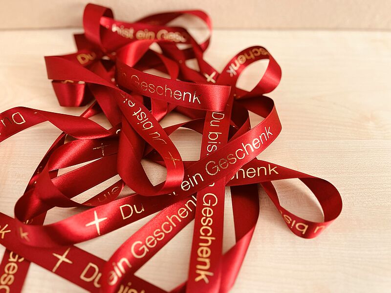 Die Synodalen bekommen vom Präsidium als Dank für ihre Arbeit zwei Bänder mit der Aufschrift "Du bist ein Geschenk" überreicht: Eines ist für sie selbst, eines zum Verschenken. So werde der Gedanke von Liebe und Wertschätzung weitergetragen.