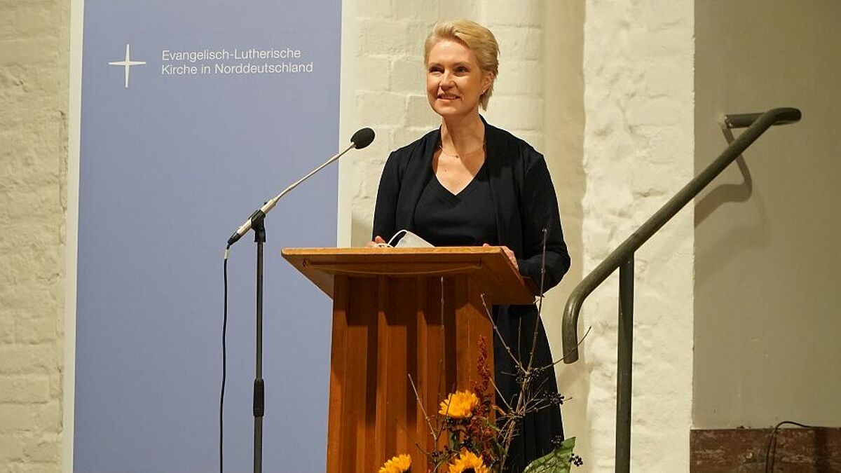 Die Ministerpräsidentin des Landes Mecklenburg-Vorpommern Manuela Schwesig hob in ihrem Grußwort die gute Zusammenarbeit von Land und Kirche hervor: „Christliches Leben und christliche Werte gehören zu unserem Land. Menschenwürde, Freiheit, Gleichheit der Rechte und der Chancen, Solidarität – das sind Werte, die schon die Reformation stark gemacht haben. Indem wir diese Werte heute schützen und mit Leben erfüllen, setzen wir fort und entwickeln weiter, was die Reformation begonnen hat. Angefangen mit der grundlegenden Einsicht: Ich trage Verantwortung nicht nur für mich selbst, sondern auch für andere und für die Welt, in der wir leben.“