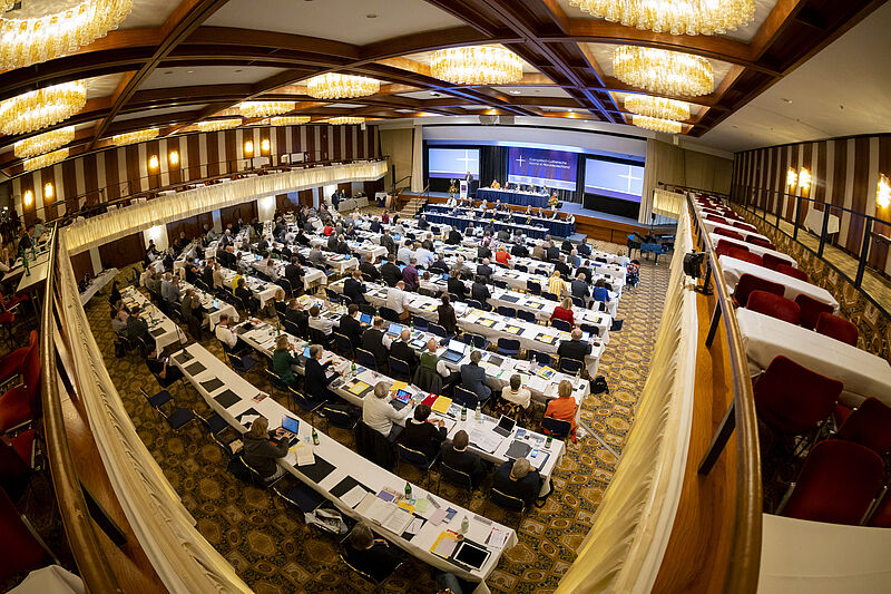 Mir ist diese Synodentagung ein Herzensanliegen, weil gerade unsere Kirche angesichts des schrecklichen Krieges in der Ukraine und seiner Folgen, angesichts der Nöte, Sorgen und Ängste, die dieses Geschehen in breiten Teilen auch unserer Gesellschaft auslöst, nicht weitermachen darf, ohne sich den Raum für ein vertieftes Nachdenken über diese Umbruchsituation zu nehmen. Präses Hillmann