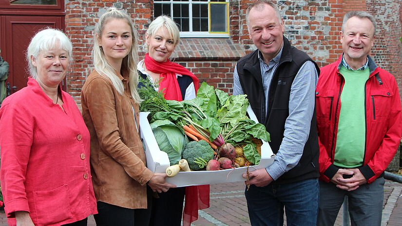 Traditionell fertigt die Landjugend eine Erntekrone an und auch die Landfrauen sind mit von der Partie. Da es das sonst übliche Rahmenprogramm zum Landeserntedankfest in diesem Jahr nicht geben wird, haben Kirchenkreis und Kirchengemeinde in Zusammenarbeit mit dem Kreisbauernverband ein alternatives Angebot entwickelt: Auf der Website www.kirche-dithmarschen.de/Erntedank2021 kann man noch bis Mittwoch, 29. September, eine Erntedankkiste mit frischem regionalen Gemüse bestellen.