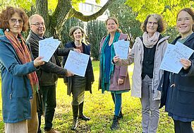 Die neue Pröpstin Sabine Schümann (3.v.r.) mit Propst Dirk Fey, Bischof Tilman Jeremias, Präses Christoph Heydemann, Pröpstin Britta Carstensen und Propst Marcus Antonioli (v.l.n.r.).