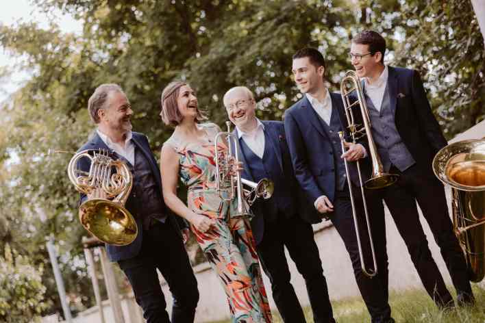 Vor der Abfahrt bitte anschnallen! Harmonic Brass beschleunigt schnell: von Null auf Staunen in wenigen Sekunden. Hauptrolle in diesem Programm spielt der Tourbus des Ensembles. Dem Publikum werden alle Türen geöffnet.