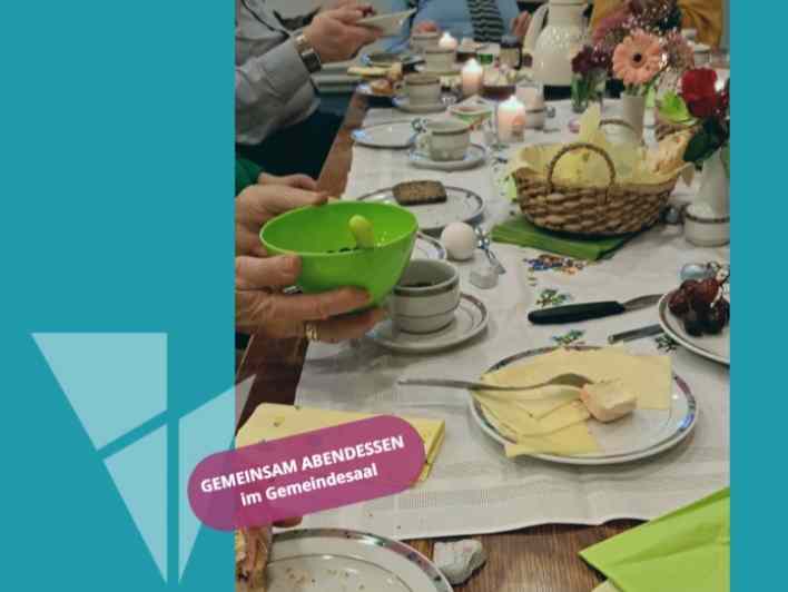 Einmal im Monat wollen wir in netter Gesellschaft zu Abend essen - donnerstags um 19:30 Uhr im kleinen Gemeindesaal. Bitte melden Sie sich bis zum Tag davor (Mittwoch) im Gemeindebüro an.
