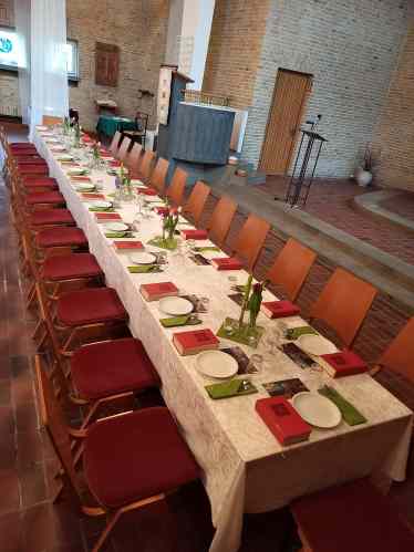 Abendmahl an Tischen zur Erinnerung an das letzte Abendmahl von Jesus mit seinen Jüngern.