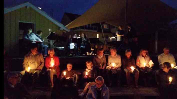 Mit Blick auf die untergehende Sonne feiern wir eine halbstündige Andacht am Meer.