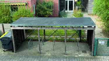 Im Workshop wird die Dachfläche des abgebildeten Fahrradunterstands gemeinsam begrünt. Dabei werden verschiedene Begrünungsarten vorgestellt, geeignete Pflanzenarten erläutert und praktische Hinweise zu Aufbau, Pflege und Wartung gegeben. Auch durch kleine Grünflächen entstehen über den Dächern der Stadt neue, blühende Lebensräume, die Natur und Architektur in Einklang bringen.