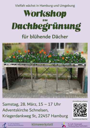 Im Workshop wird die Dachfläche des abgebildeten Fahrradunterstands gemeinsam begrünt. Dabei werden verschiedene Begrünungsarten vorgestellt, geeignete Pflanzenarten erläutert und praktische Hinweise zu Aufbau, Pflege und Wartung gegeben. Auch durch kleine Grünflächen entstehen über den Dächern der Stadt neue, blühende Lebensräume, die Natur und Architektur in Einklang bringen.