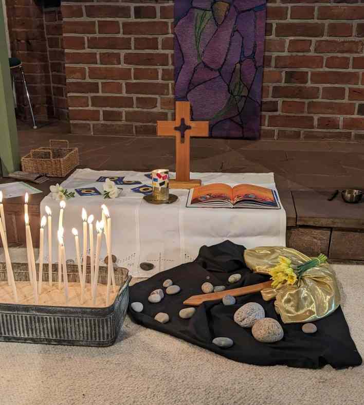 Eine gute halbe Stunde lang im Altarraum der Versöhnungskirche mit kindgerechten Liedern, Bewegung und einer biblischen Geschichte