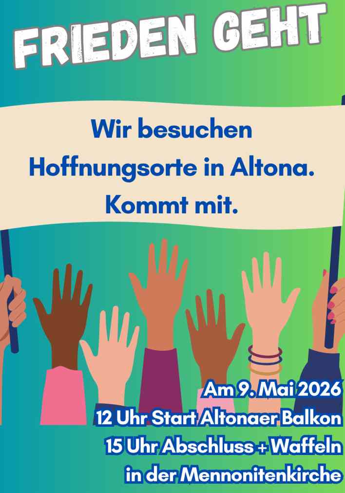 Friedensruf im Norden, Mahnwache für Frieden, Brot und Rosen, Mennoniten Gemeinde Hamburgen |