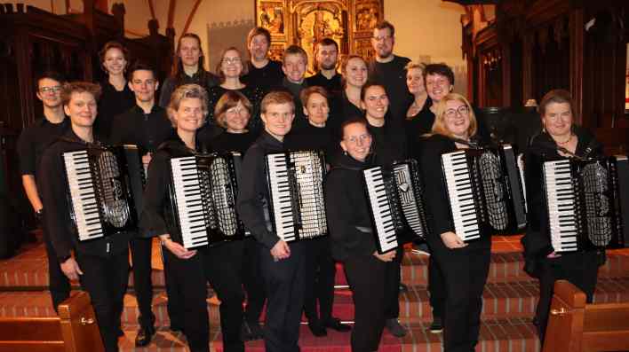 Zum ersten Mal ist das Akkordeonorchester Eckernförde e. V. in Henstedt-Ulzburg zu Gast. Die 1. Vorsitzende Meike Salzmann dürfte indes schon vielen Akkordeonfans in Henstedt-Ulzburg bekannt sein, ist sie doch schon viele Jahre im Januar in der Kreuzkirche mit ihrem Duopartner Ulrich Lehna an der Klarinette als Duo „Sing Your Soul“ aufgetreten. Hier entstand auch die Idee, das Akkordeonorchester in die Kreuzkirche zu holen und nun bietet die Ernennung des Akkordeons zum „Instrument des Jahres 2026“ den willkommenen Anlass.