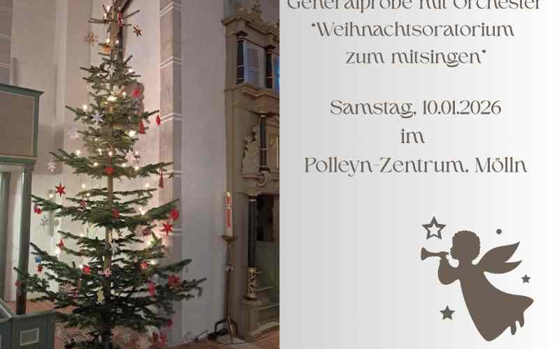 Sonntag, 4. Januar 12:00 – 17:00 Uhr, Polleyn-Zentrum, Jochim-Polleyn-Platz 9, 23879 Mölln, regionale Chorprobe „Weihnachtsoratorium zum Mitsingen“