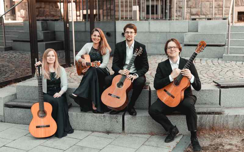 Die vier Gitarristen verbindet die gemeinsame Leidenschaft für die Kammermusik und das Studium an der Hochschule für Musik Franz Liszt Weimar.