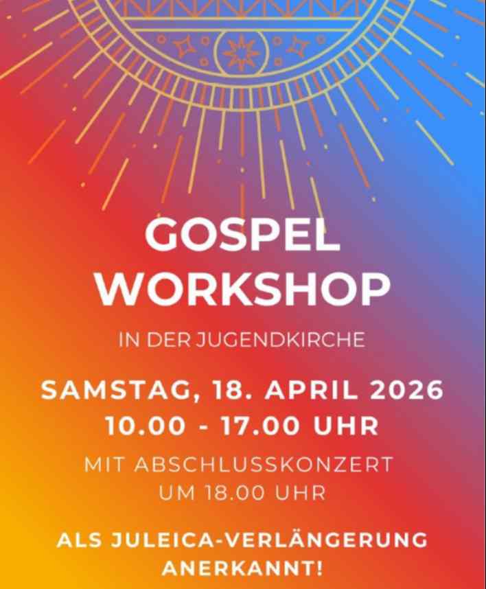 Zum Abschluss des Workshops ist um 18.00 Uhr ein öffentliches Konzert in der Jugendkirche geplant. Hierzu sind eure Familie, Freunde, Freundinnen und Bekannte herzlich eingeladen.