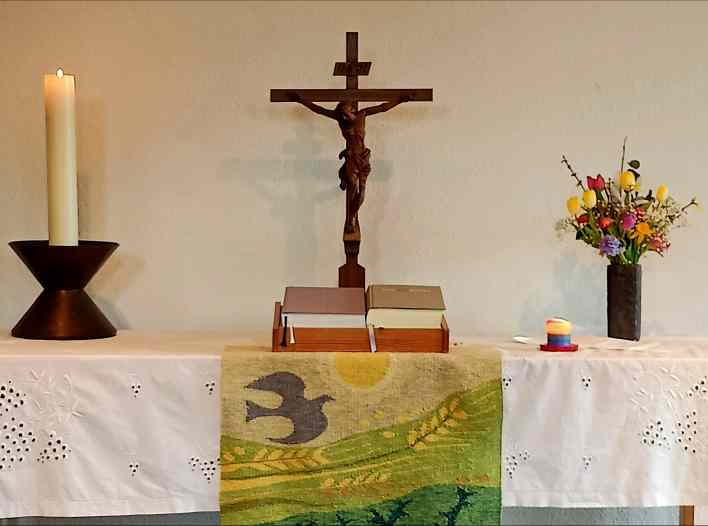 Wir feiern Gottesdienst in der Winterkirche in unserem Gemeindehaus.