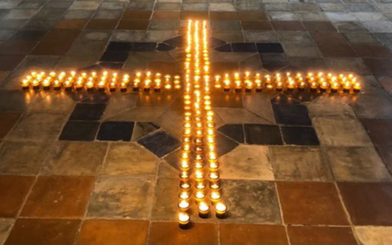 Wir denken an die Verstorbenen des vergangenen Kirchenjahres, nennen ihre Namen und zünden eine Kerze für sie an.