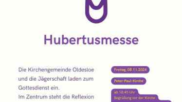 Die Hubertusmesse kann als Jägergottesdienst bezeichnet werden. Die Veranstaltung wird jährlich zu Ehren Gottes und zur Erinnerung an den Heiligen Hubertus von Lüttich um den 3. November, dem Hubertustag, durchgeführt. Der Überlieferung nach war Hubertus als junger Edelmann ein leidenschaftlich ausschweifender Jäger, der die Erlegung des Wildes als Selbstzweck sah. Später erkannte Hubertus in allen Wesen Geschöpfe göttlichen Ursprungs und hat sich deshalb hegend und pflegend für sie verwandt. Diese Grundhaltung der „Achtung vor dem Geschöpf“ ging als Waidgerechtigkeit in die Verhaltensgrundsätze der Jägerschaft ein.
