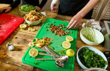Hier kannst du lernen, wie du einfache Gerichte selbst kochen kannst. Am Ende essen wir natürlich gemeinsam das, was wir zubereitet haben.