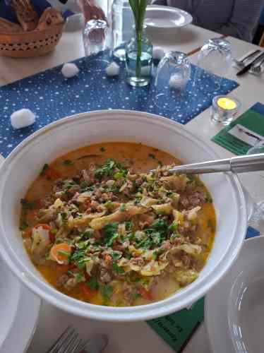 „Gemeinsam statt einsam“ am Mittagstisch sitzen und zusammen essen – das ist an jedem ersten Donnerstag im Monat bei uns möglich! Jeweils um 12.30Uhr erwartet die Gäste ein frisch gekochtes Mittagessen, das von einem ehrenamtlichen Team zubereitet wird. Ein Kostenbeitrag wird nicht erhoben, wer mag, kann mit einem kleinen Obolus im Sparschwein die Einkäufe unterstützen.