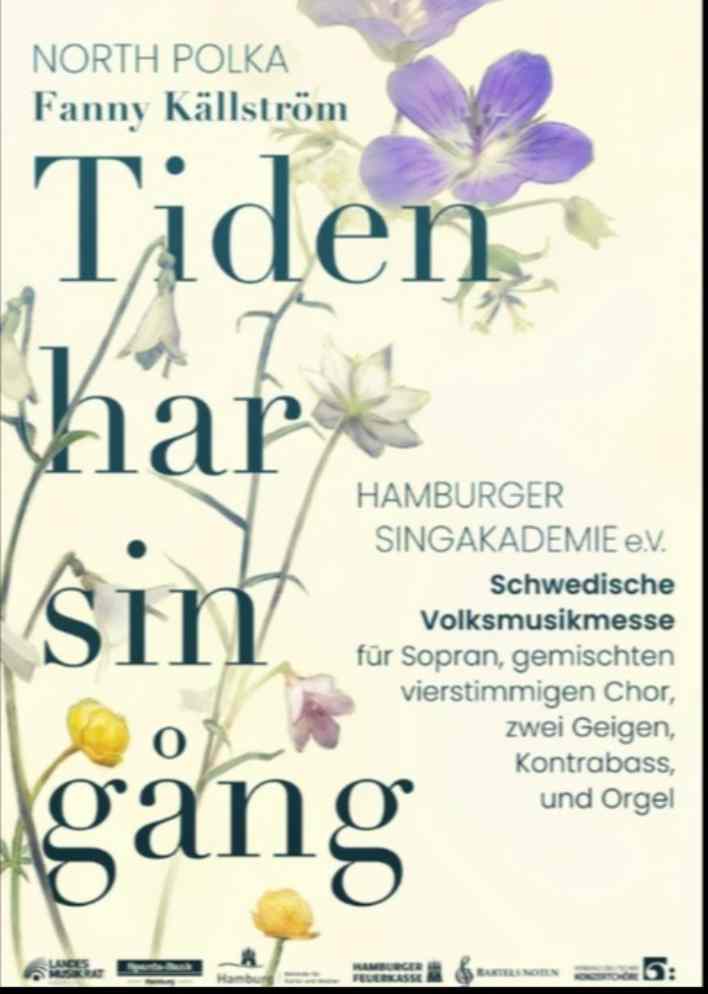 Im Mittelpunkt des Konzerts steht die deutsche Erstaufführung von Fanny Källströms (geb. 1995) Werk „Tiden har sin gång“ („Die Zeit hat ihren Lauf“) – einer Volksmusikmesse für Sopran, gemischten vierstimmigen Chor, zwei Geigen, Kontrabass und Orgel.