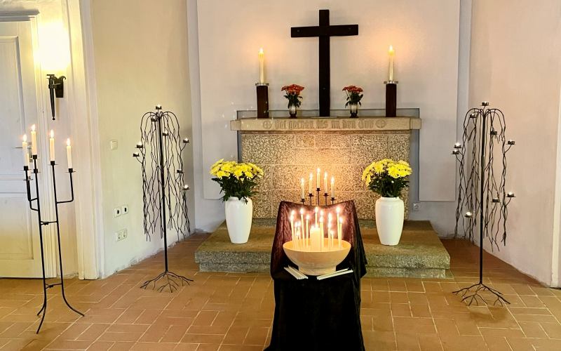 Auch in diesem Jahr ist die Kapelle für Sie geöffnet. Wenn Sie möchten können Sie in der Stille eine Kerze anzünden und einen Moment innehalten.