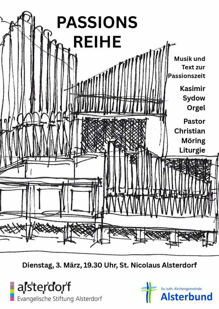 Orgelimprovisationen und Bibeltexte rund um das Passionsgeschehen mit Kasimir Sydow (Orgel) und Pastor Christian Möring.
