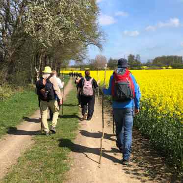 Pilgern: Das bedeutet: In guter Gemeinschaft in der Natur unterwegs zu sein; Gelegenheit zu haben, mal vom Alltag und Handy abzuschalten; gemeinsam zu laufen, schnacken, singen, spielen, kochen, essen, aber Zeit und Ruhe für sich selbst zu haben; Abends in den Kirchen auf der Route schöne Andachten zu feiern und im besten Fall, nicht nur sich selbst, sondern auch auch Gott etwas näher zu kommen.