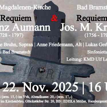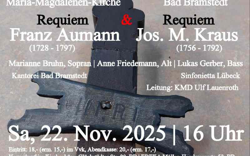 Franz Aumann und Jos. Martin Kraus haben am Ende des 18. Jahthunderts gelebt und jeweils ein Requiem geschrieben. Beide Werke sind leider fast unbekannt. Freuen Sie sich auf mozatähnliche Klänge und nehmen Sie sich die Zeit, die trübe Jahreszeit mit schöner Musik zu genießen.